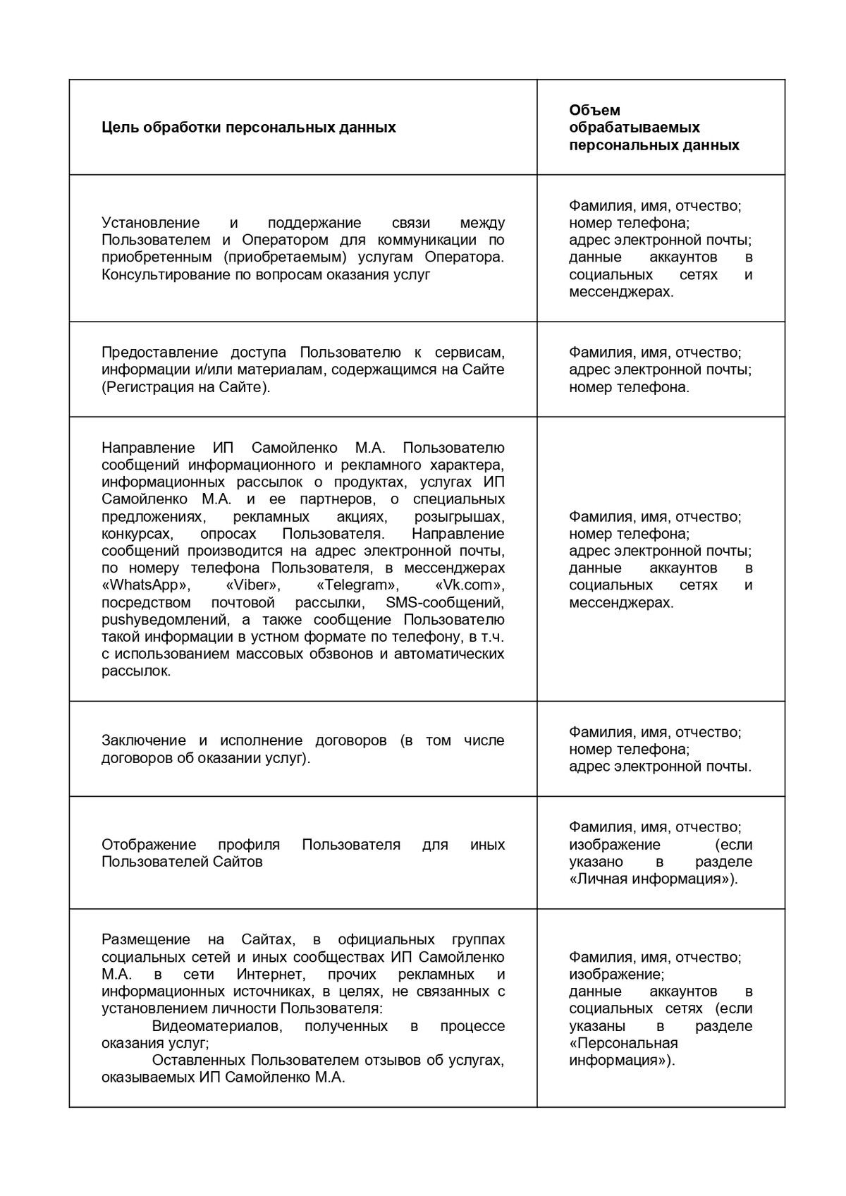 1.2. Настоящая Политика определяет порядок обработки персональных данных пользователей сайта https://samoylenko.education/, иных информационных ресурсов, мессенджеров (далее – Сайт), условия и принципы обработки персональных данных, права Пользователей и обязанности ИП Самойленко М.А., сведения о реализуемых мерах по защите обрабатываемых персональных данных.